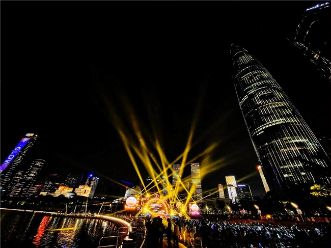 本次演唱会选址深圳人才公园,巧妙依托城市天际线为天然幕布,搭配定制级舞台设计与全景声效,将深圳地标夜景完美融入演出之中。观众在粼粼波光与璀璨灯火中聆听城市心声,沉浸式体验“声、光、城、人”交融的艺术现场,真切感受深圳音乐与城市深度交融、同频共生的生动画面。