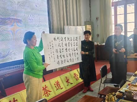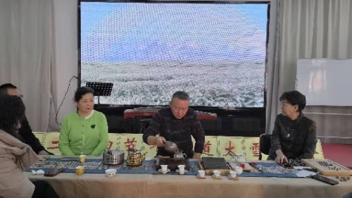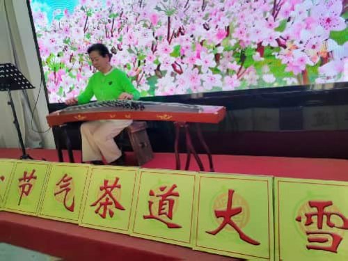 活动中,乐器演奏为此次茶会注入了浓厚的文艺气息。首先由天津市中老年茶艺队队员带来一曲古筝独奏《山歌好比春江水》,随后金孔雀葫芦丝艺术团以电吹管演绎《花又期》,最后古筝与电吹管声韵相和,合奏《我的祖国》。乐声袅袅间,茶香氤氲,大家共同赏读了元稹《咏廿四气诗·大雪十一月节》、欧阳勋《茶德颂》,并欣赏了书法家、诗人高象昶先生为本次茶会专门创作的诗作。随着茶香渐渐飘散,活动步入尾声。这场冬日茶会雅集,不仅让参与者领略到茶与艺术交融的雅致,更让人深切感受到中华传统节气文化与茶文化历久弥新的韵味与生命力。